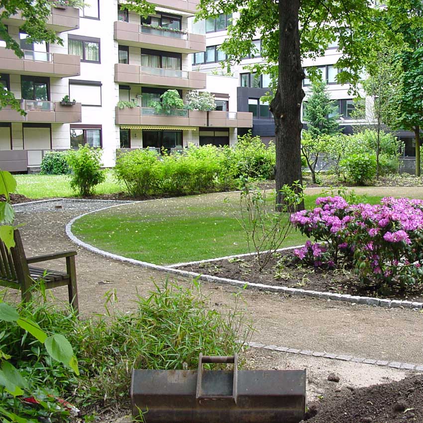 Mit der direkten Verbindung zum Innenhof öffnet sich der neue Foyerbereich großzügig zum Garten (Innenhof mit Grünflächen) und wertet durch neue Klima- und Lichtkonzepte die Warteräumlichkeiten auf.