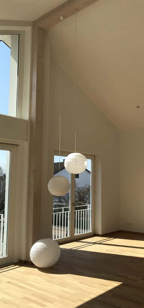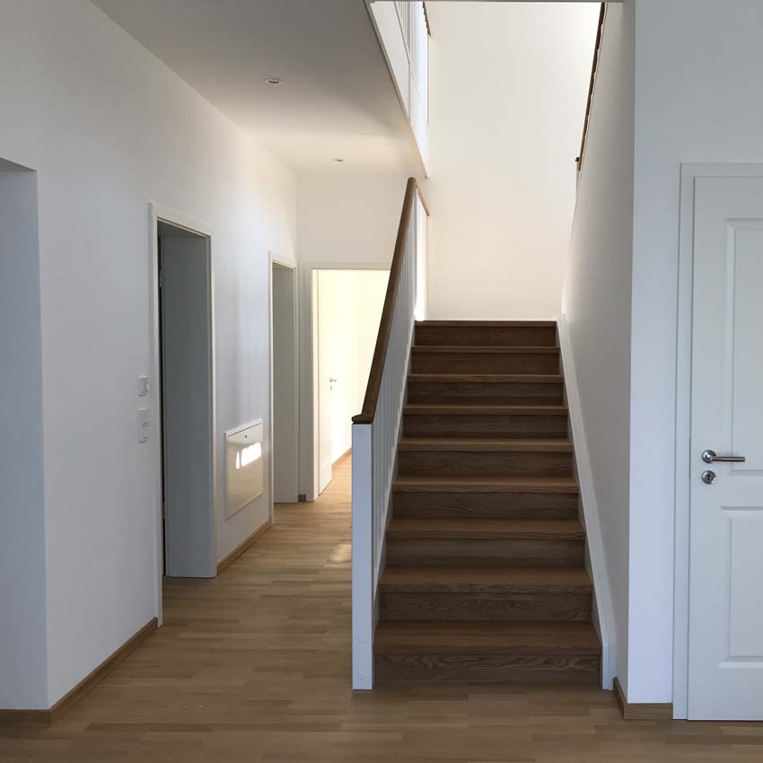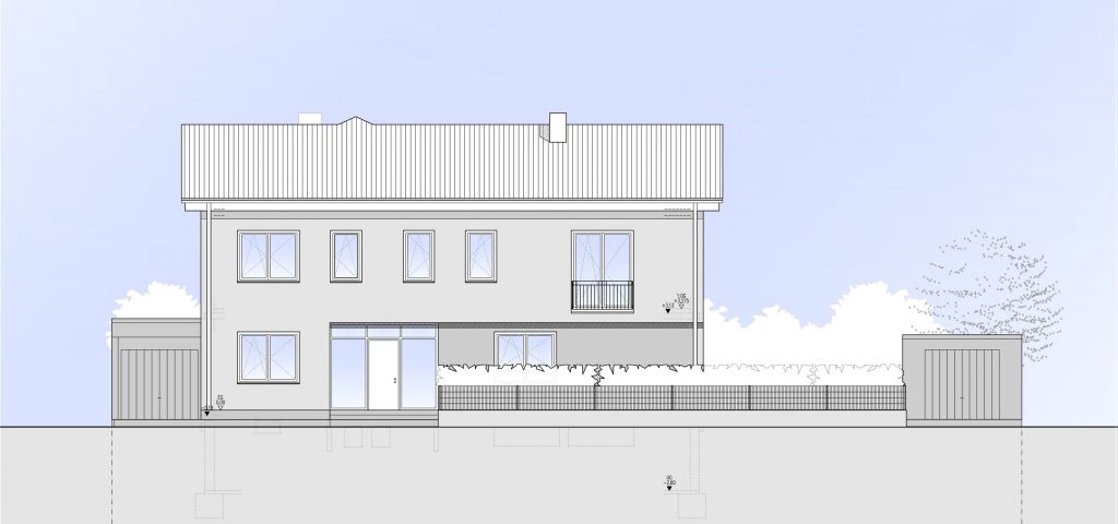 Das bestehende eingeschossige Einfamilienwohnhaus wurde bis auf das Kellergeschoss abgebrochen. Auf diesem wurde das Wohnhaus neu errichtet und um ein Geschoss ergänzt.