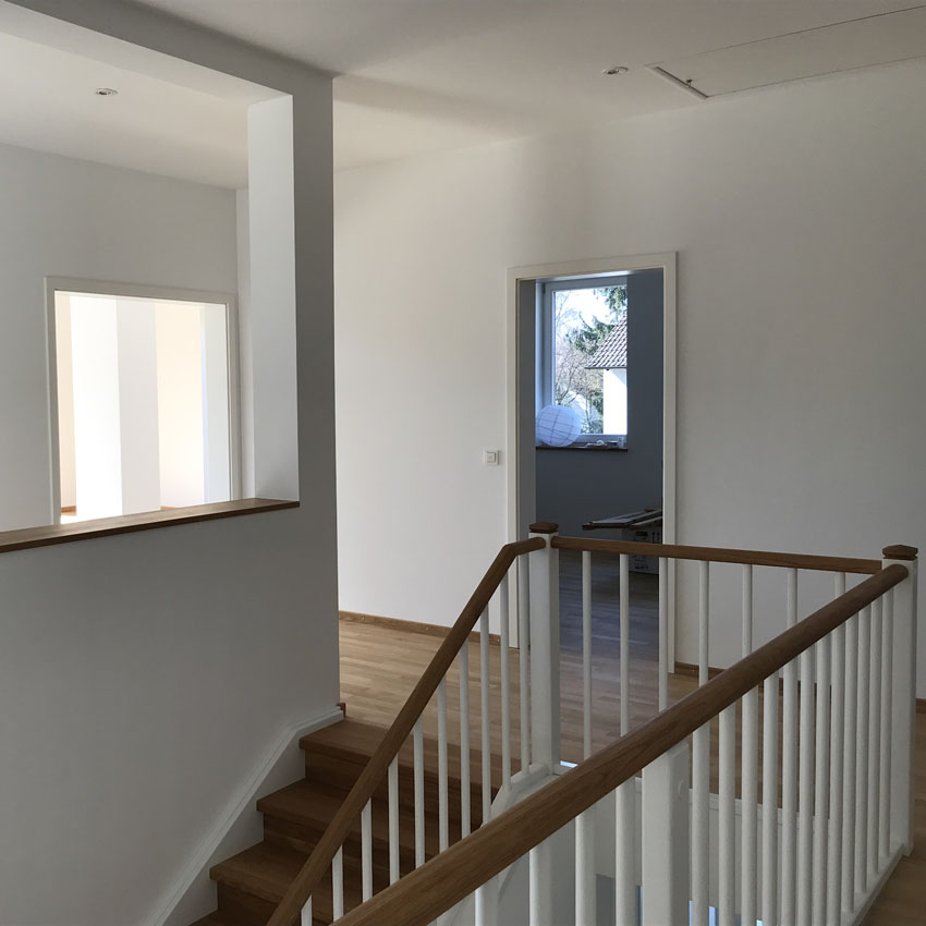 Neubau auf bestehendem Kellergeschoss mit Erweiterung um ein Geschoss.